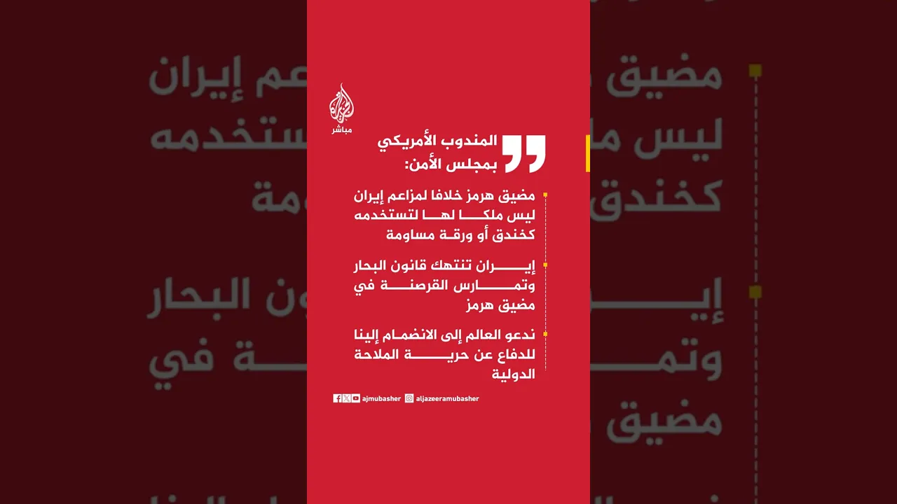 المندوب الأمريكي بمجلس الأمن:مضيق هرمز خلافا لمزاعم إيران ليس ملكا لها لتستخدمه كخندق أو ورقة مساومة