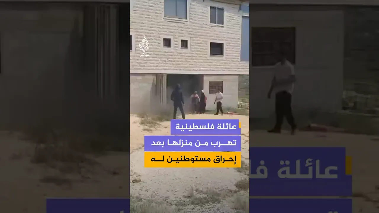 عائلة فلسطينية تهرب من منزلها بعد إحراق مستوطنين له