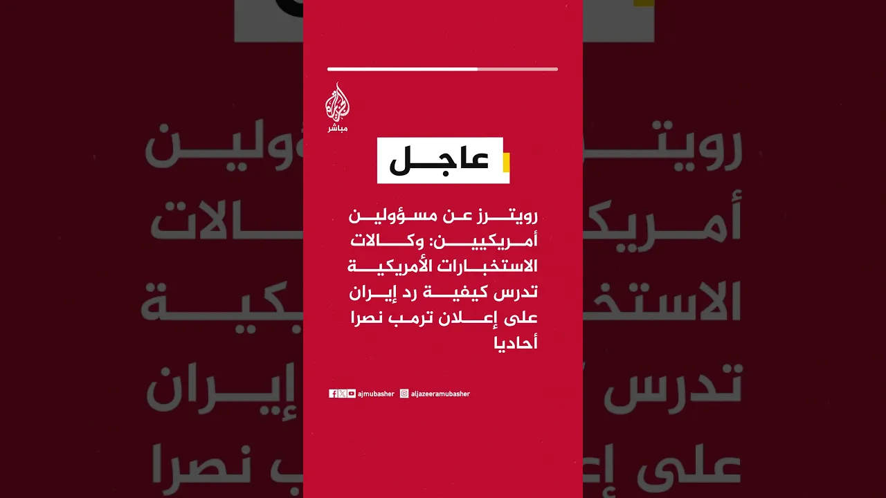 عاجل | رويترز عن مسؤولين أمريكيين: وكالات الاستخبارات الأمريكية تدرس كيفية رد إيران على إعلان ترمب نصرا أحاديا