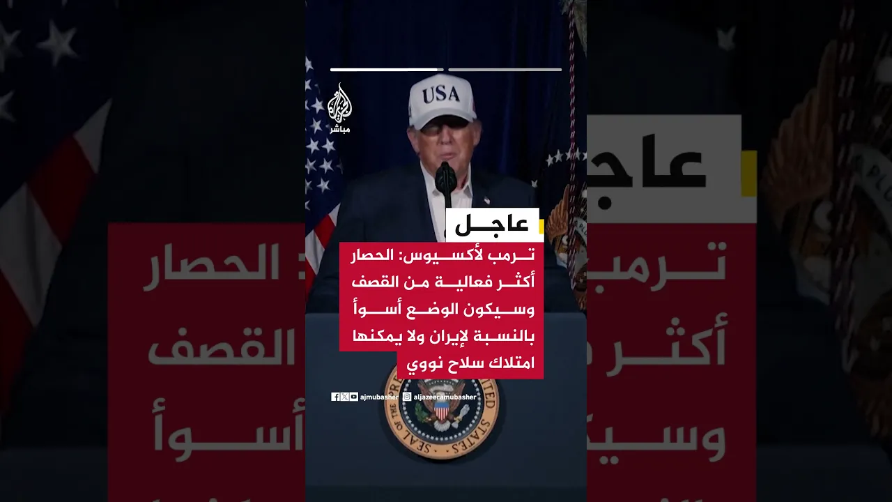 . ترمب لأكسيوس: الحصار أكثر فعالية من القصف وسيكون الوضع أسوأ بالنسبة لإيران ولا يمكنها امتلاك سلاح نووي