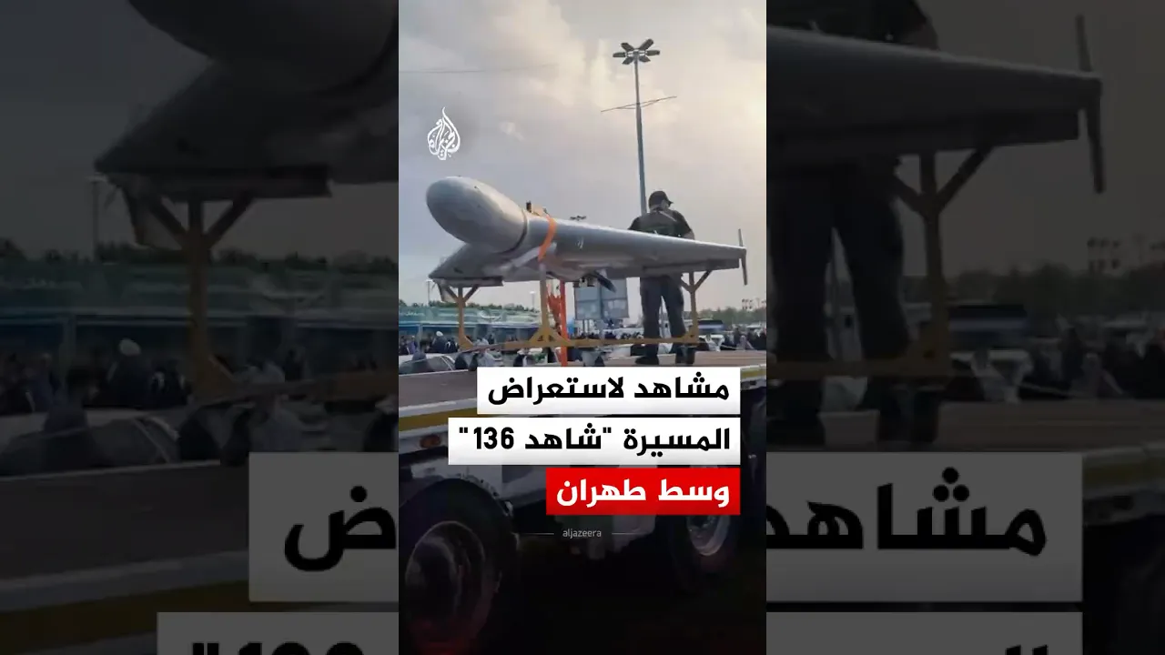 مشاهد لاستعراض الطائرة المسيرة "شاهد 136" خلال مظاهرة وسط العاصمة الإيرانية