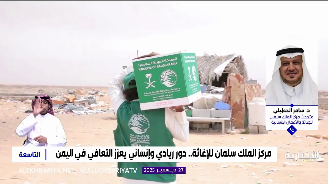 متحدث مركز الملك سلمان للإغاثة د. سامر الجطيلي: المساعدات السعودية امتدت على الجغرافيا اليمنية كاملة دون استثناء عبر تنفيذ أكثر من 1178 مشروعا تنمويا