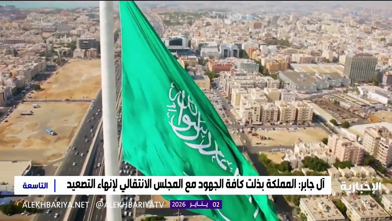 آل جابر أكدَ أن المملكةَ سعتْ منذُ عدةِ أسابيعَ وحتى أمسِ الخميس ببذلِ كافةِ الجهودِ مع المجلسِ الانتقاليِ لإنهاءِ التصعيدِ وخروجِ قواتهِ من المعسكراتِ خارجَ المحافظتينِ، وتسليمِها لقواتِ درعِ الوطنِ في حضرموت، إلا أنَّها واجهتْ رفضاً وتعنتاً مستمراً من الزبيدي.. آخرُها رفضُه لإصدارِ تصريحٍ لطائرةٍ تُقل وفدًا رسميًا سعوديًا يومَ أمس الخميس إلى عدن والذي تمَ الاتفاق على قدومِهِ مع بعضِ قادةِ المجلسِ الانتقاليِ لإيجادِ الحلولِ