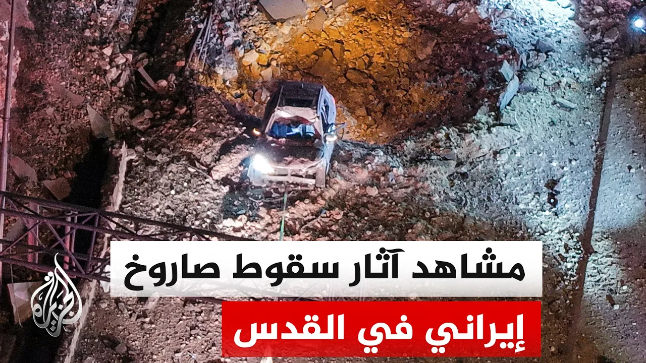 المشاهد الأولى لمكان سقوط صاروخ إيراني استهدف مدينة القدس والإعلان عن 7 إصابات إسرائيلية