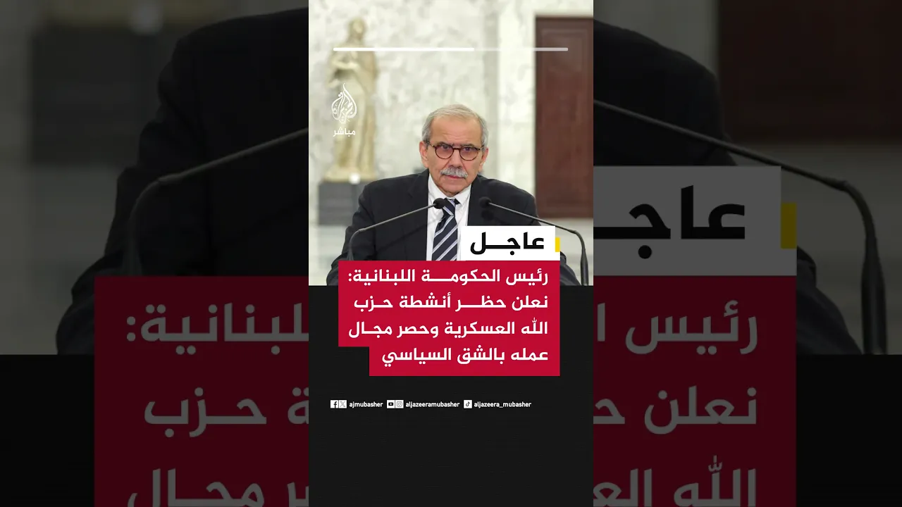رئيس الوزراء اللبناني: نعلن حظر أنشطة حـ ـزب الله العسكرية وحصر مجال عمله بالشق السياسي
