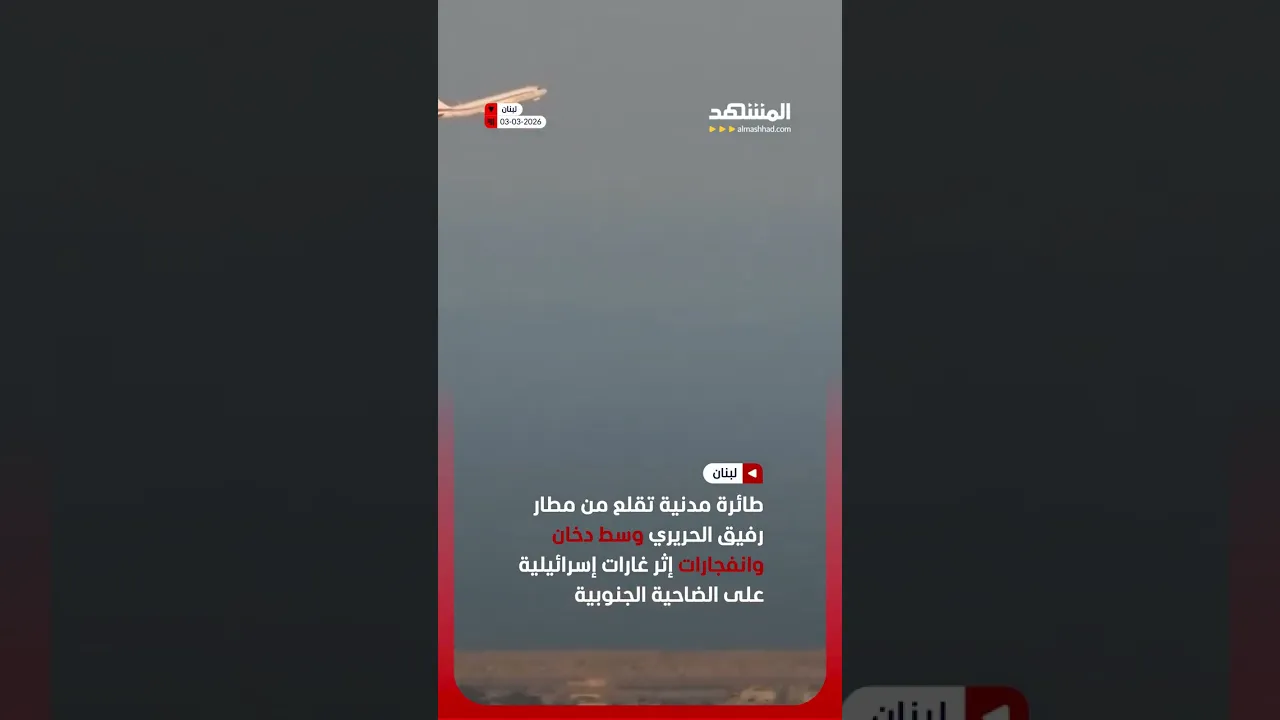 طائرة مدنية تقلع من مطار رفيق الحريري وسط دخان وانفجارات #اخبار_المشهد