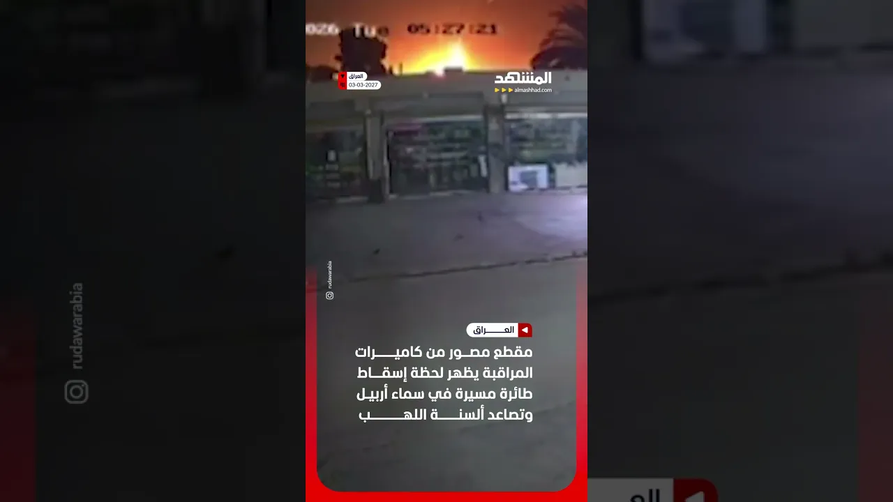 كاميرات المراقبة توثق لحظة إسقاط طائرة مسيرة في سماء أربيل #اخبار_المشهد #العراق #المشهد