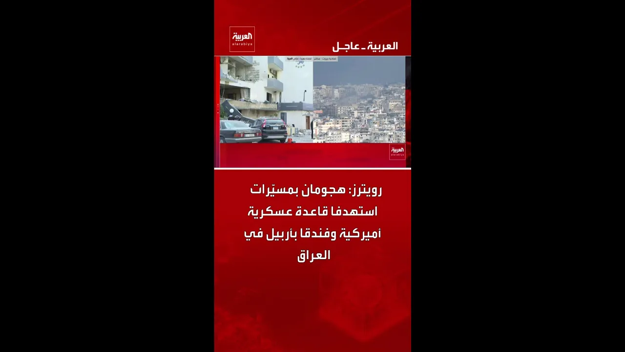 رويترز عن مصادر أمنية: استهداف قاعدة عسكرية أمريكية وفندق بمسيرات في أربيل بالعراق فجر اليوم