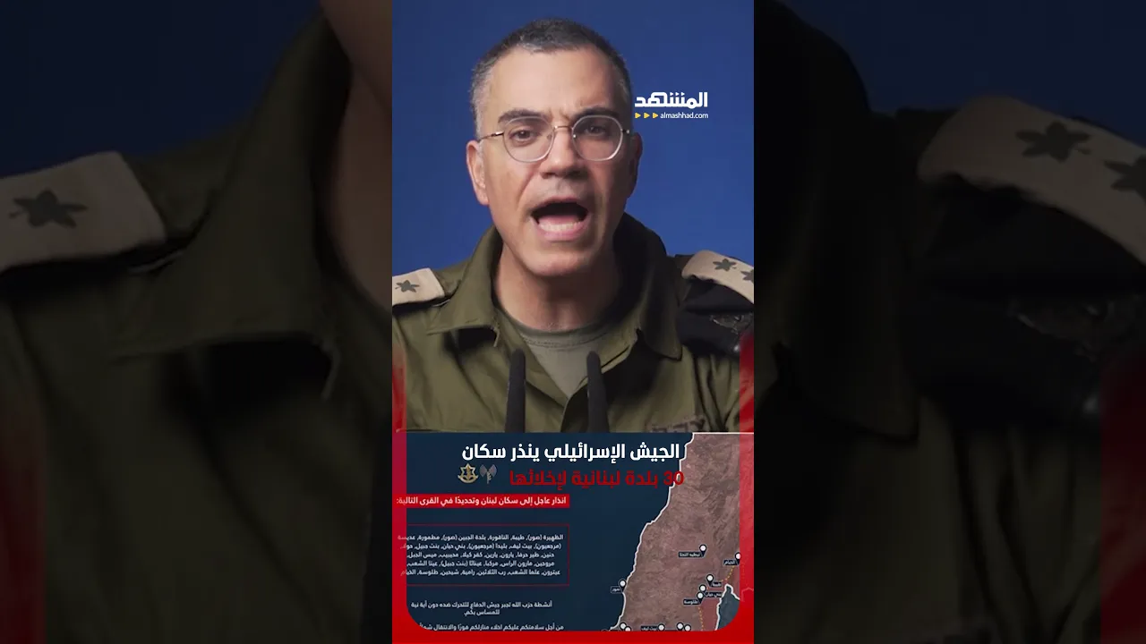 الجيش الإسرائيلي ينذر سكان 30 بلدة لبنانية لإخلائها #اخبار_المشهد
