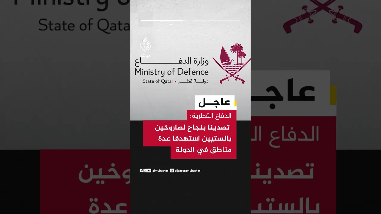 الدفاع القطرية: تصدينا بنجاح لصاروخين بالستيين استهدفا عدة مناطق في الدولة