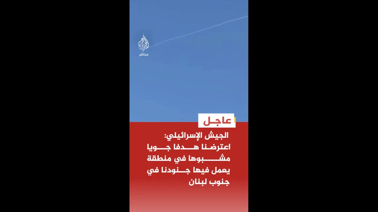 عاجل | الجيش الإسرائيلي: اعترضنا هدفا جويا مشبوها في منطقة يعمل فيها جنودنا في جنوب لبنان