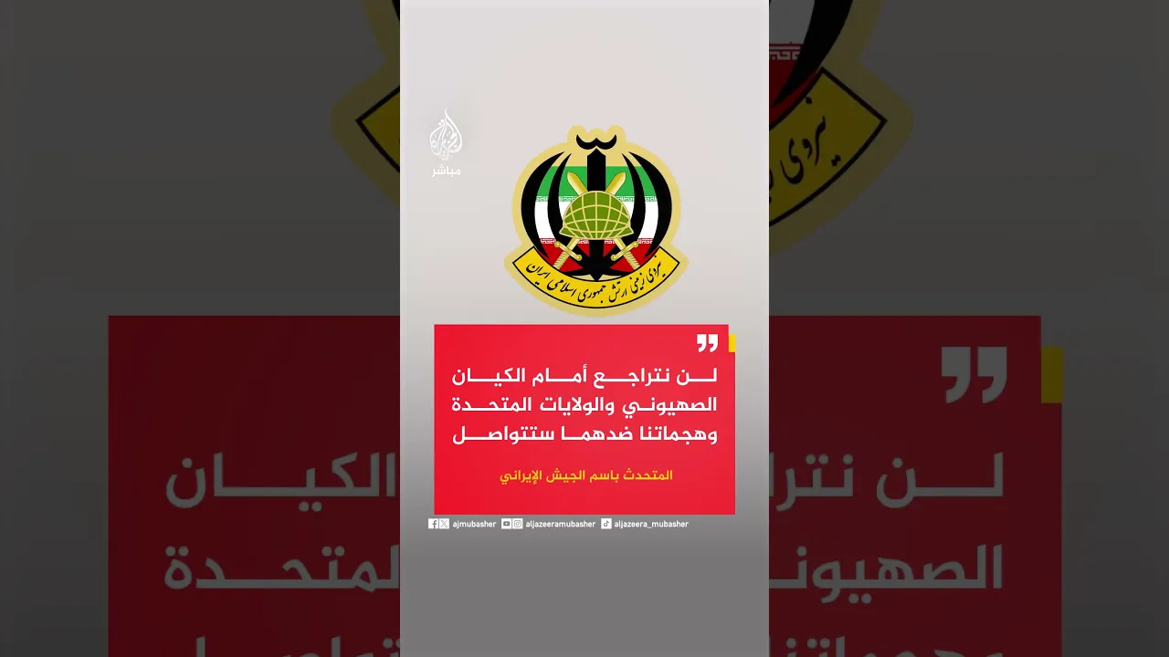 المتحدث باسم الجيش الإيراني: لن نتراجع أمام الكيان الصهيوني والولايات المتحدة وهجماتنا ضدهما ستتواصل