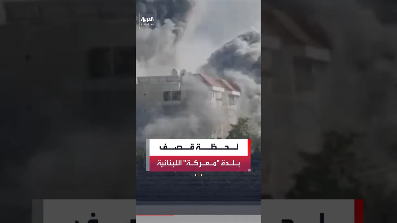 مشاهد توثق لحظة سقوط قذيفة إسرائيلية على مبانٍ في بلدة معركة جنوب لبنان