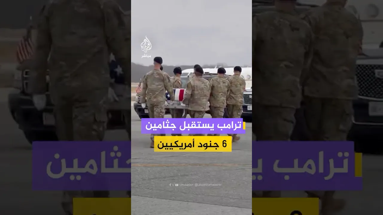 الرئيس الأمريكي ترامب ونائبه ووزير الدفاع يستقبلون نعوشا تحمل جثامين ستة جنود أمريكيين