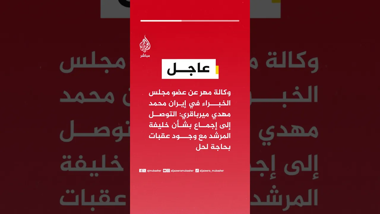عاجل | وكالة مهر عن عضو مجلس الخبراء في إيران محمد مهدي ميرباقري: التوصل إلى إجماع بشأن خليفة المرشد مع وجود عقبات بحاجة لحل