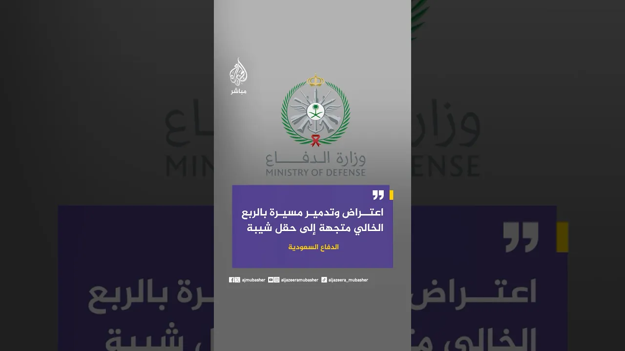 وزارة الدفاع السعودية: تم اعتراض وتدمير أربع مسيّرات بالربع الخالي متجهة إلى حقل شيبة