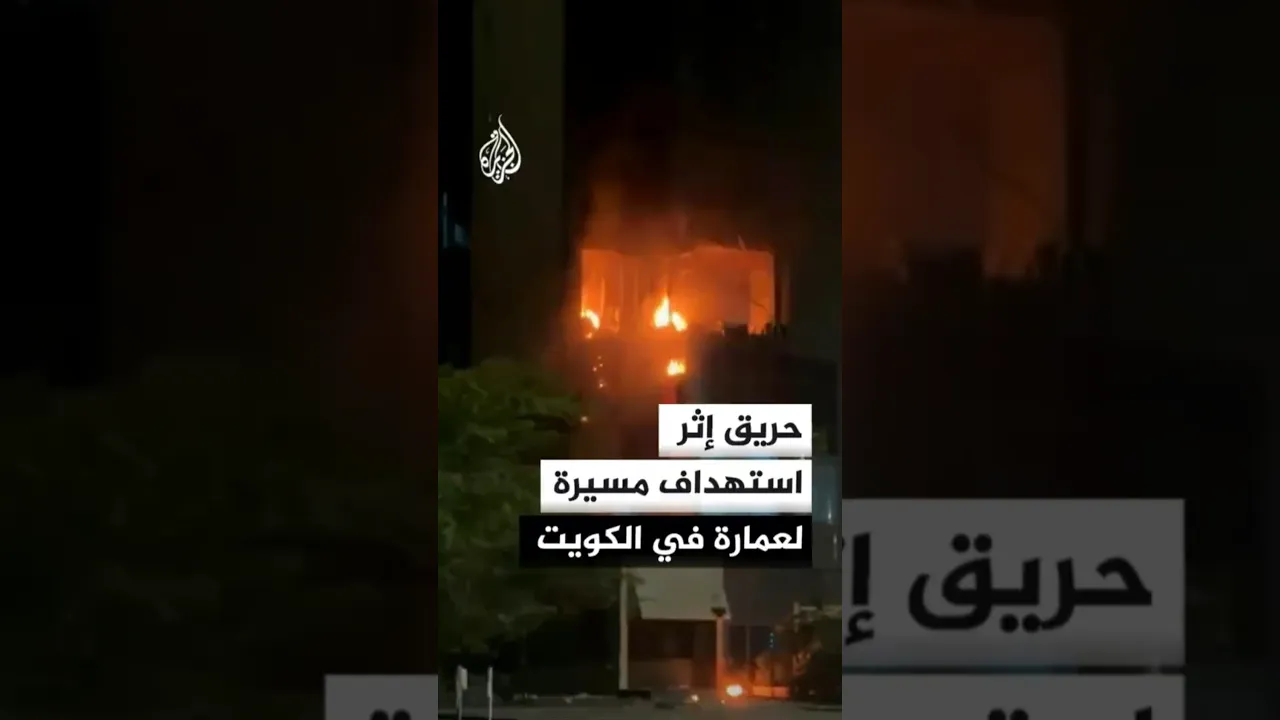اللحظات الأولى لاستهداف مسيرة عمارة سكنية في الكويت