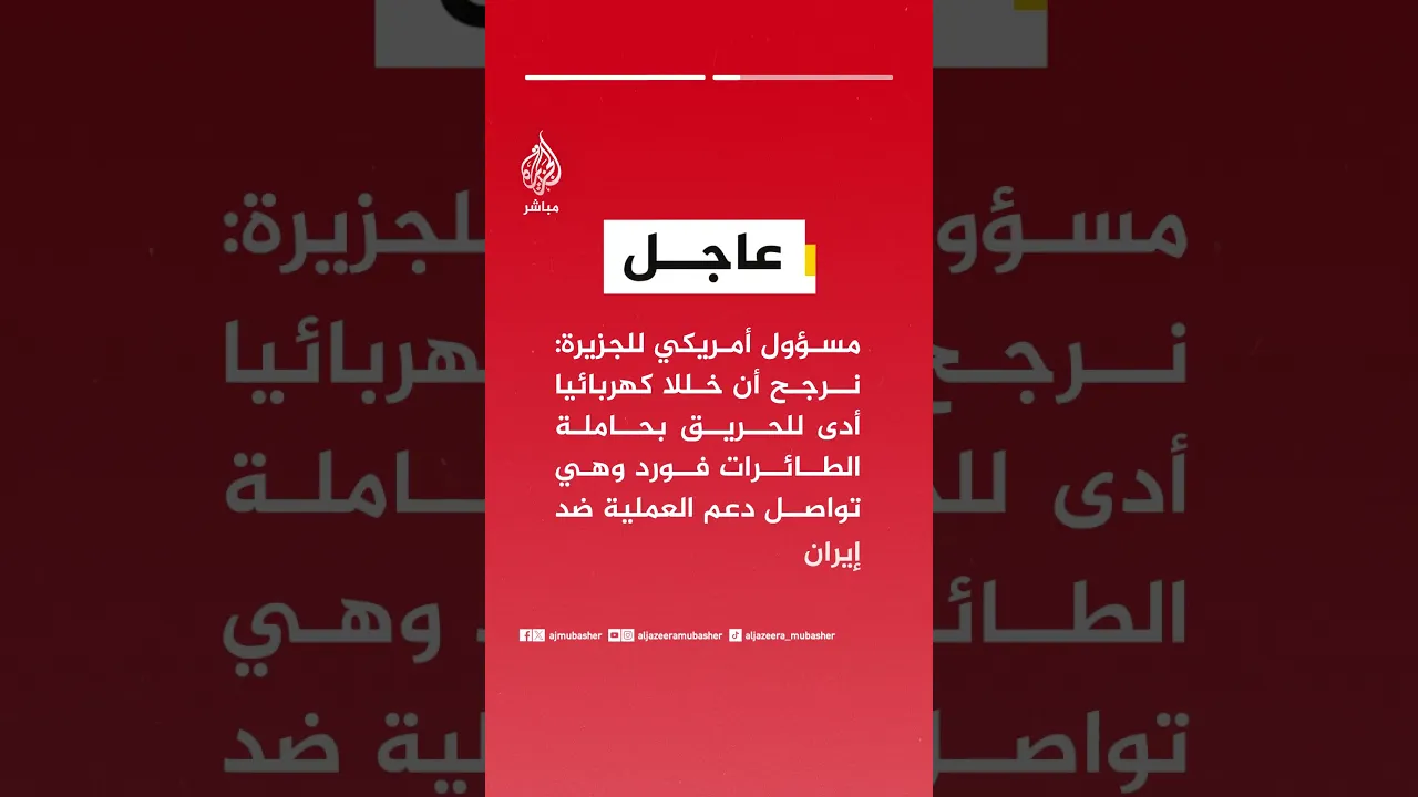 • نرجح أن خللا كهربائيا أدى للحريق بحاملة الطائرات فورد وهي تواصل دعم العملية ضد #إيران