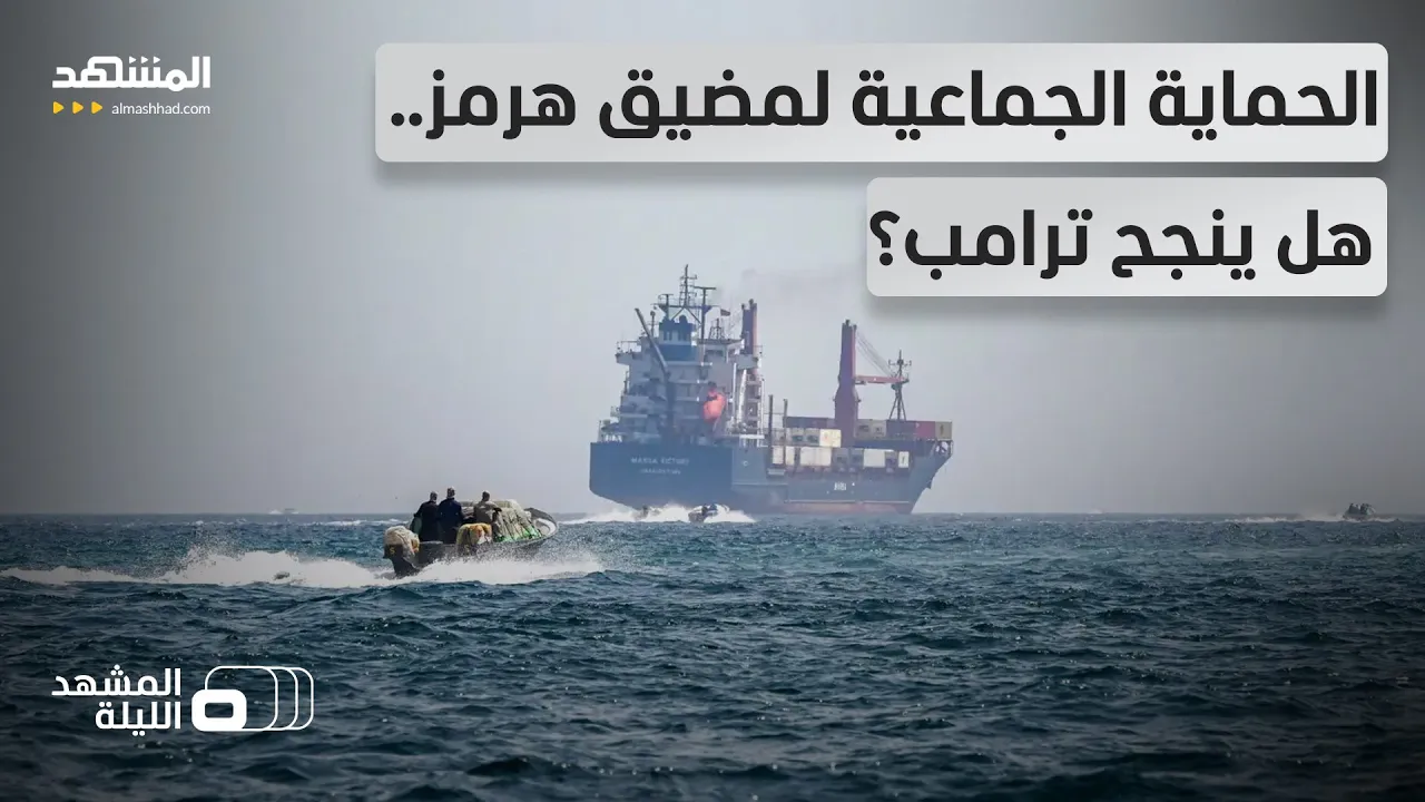 لحماية الجماعية لمضيق هرمز تعود إلى الواجهة مع حديث عن خطة يقودها دونالد ترامب لتأمين الممر النفطي الأهم في العالم، في ظل تهديدات إيرانية وتصاعد التوتر في المنطقة.. فهل تنجح هذه الخطوة في حماية الملاحة وتهدئة التصعيد؟ أم أنها قد تدفع نحو توسيع دائرة المواجهة؟.. تفاصيل أكثر في برنامج المشهد الليلة مع كاترين دياب وضيفيها بشار جرار | عضو الحزب الجمهوري الأميركي ود. عامر السبايلة | خبير استراتيجي.