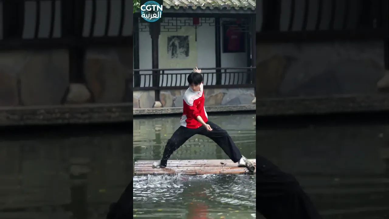 شاب يستعرض مهارة الرمح من الووشو الصيني... يثير إعجاب الأطفال!