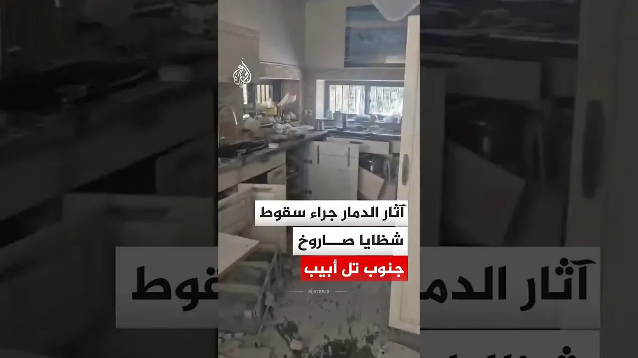 آثار الدمار جراء سقوط شظايا صاروخ جنوب تل أبيب