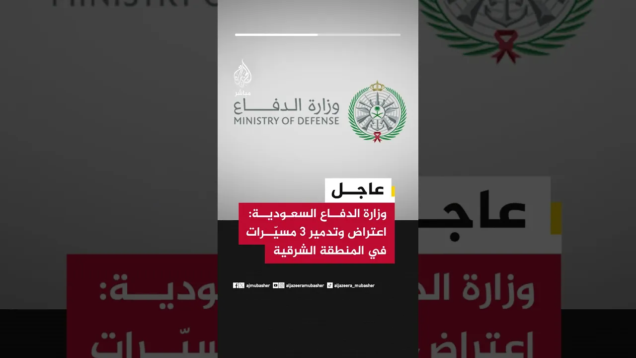 وزارة الدفاع #السعودية: اعتراض وتدمير 3 مسيّرات في المنطقة الشرقية