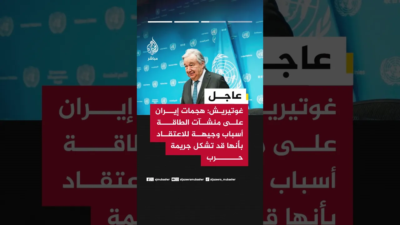 عاجل | الأمين العام للأمم المتحدة: إسرائيل تسعى إلى تدمير القدرات العسكرية الإيرانية بالكامل وتغيير النظام