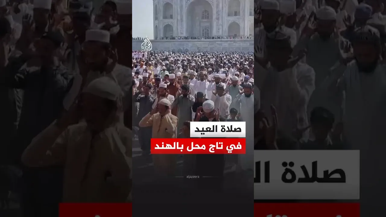 مشاهد لأداء مسلمين صلاة عيد الفطر المبارك في تاج محل بالهند، السبت.