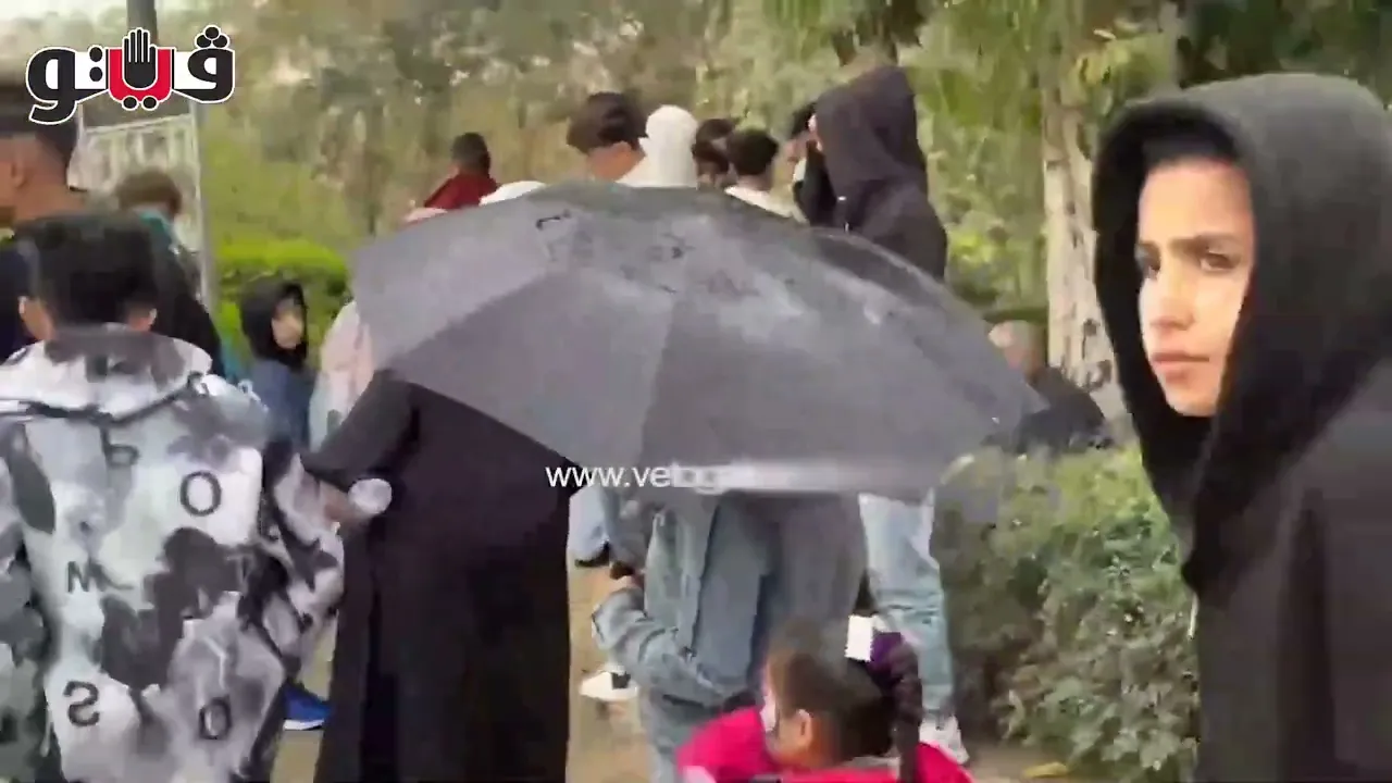 فرحة الأطفال بسقوط الأمطار في حديقة الأزهر خلال الاحتفال بثاني أيام العيد