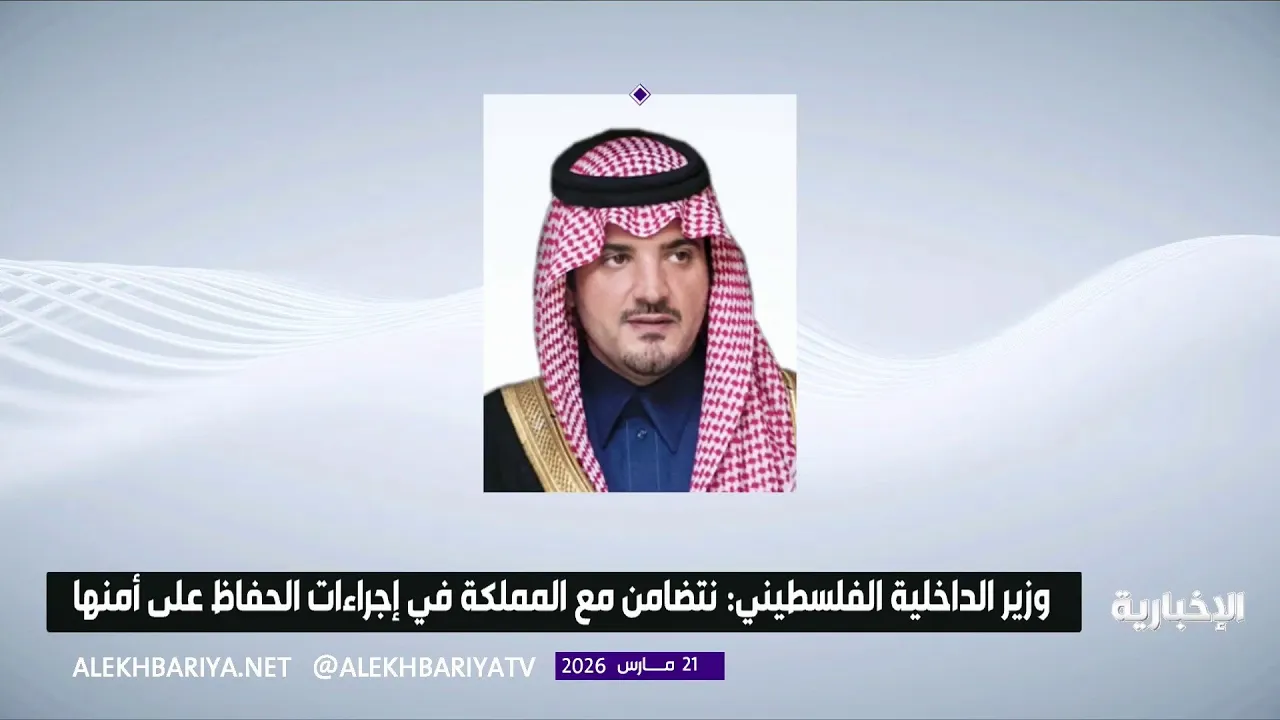 مع نظيره الفلسطيني "زياد محمود هبّ الريح" تطورات الأوضاع في المنطقة، وما تشهده من مستجدات أمنية. وأدان وزير الداخلية الفلسطيني الاعتداءات الإيرانية على المملكة ودول الخليج والمنطقة، مؤكدًا تضامن فلسطين مع كل ما تتخذه المملكة من إجراءات للحفاظ على أمنها وسيادتها وسلامة أراضيها ومواطنيها. وثمّن الأمير عبدالعزيز بن سعود هذه المشاعر الأخوية الصادقة، مؤكدًا عمق العلاقات التي تجمع البلدين، والتنسيق المستمر في مختلف القضايا ذات الاهتمام المشترك.