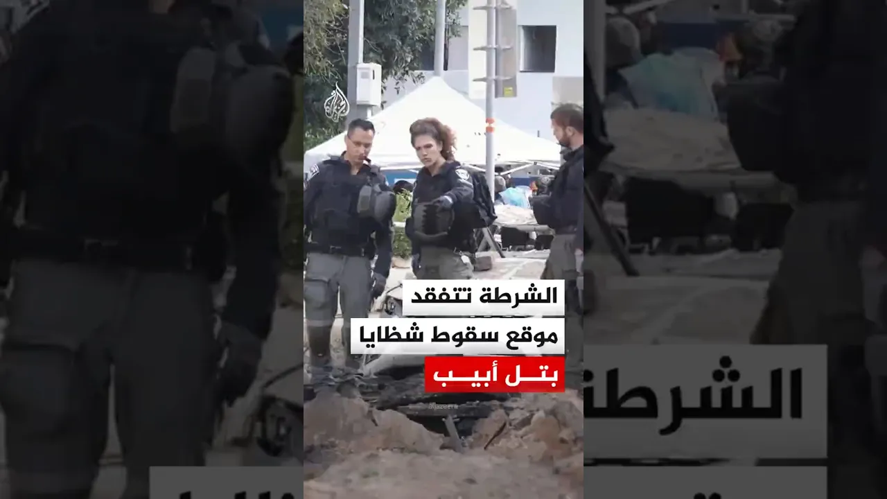 الشرطة الإسرائيلية تتفقد موقع سقوط شظايا صاروخ إيراني في تل أبيب، ألحق أضرارا بأحد المباني وعدد من السيارات.