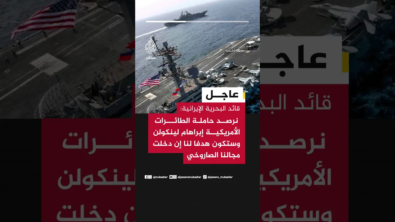 عاجل | قائد البحرية الإيرانية: نرصد حاملة الطائرات الأمريكية إبراهام لينكولن وستكون هدفا لنا إن دخلت مجالنا الصاروخي