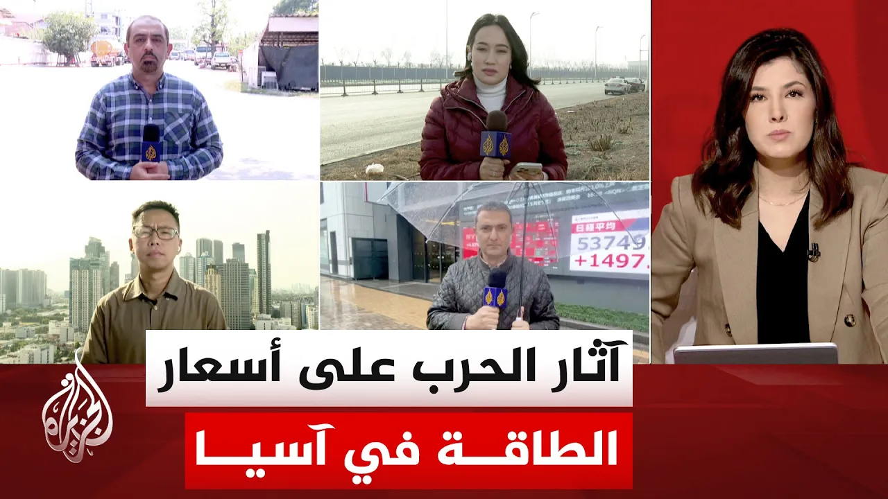 المزيد من التفاصيل والمتابعة مع شبكة مراسلينا من مانيلا برنابي لو، ومن أمام خزانات الوقود الأساسية في سيموت سونغكرام بتايلاند صهيب جاسم، ومن ميناء تيانجين بشمال شرق الصين مديرة مكتب الجزيرة شيماء جو إي إي، ومن بورصة طوكيو فادي سلامة.
