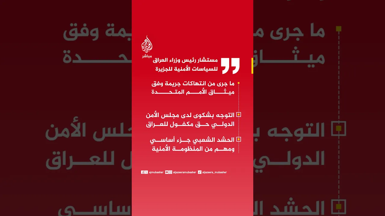 مستشار رئيس وزراء العراق للسياسات الأمنية للجزيرة: ما جرى من انتهاكات جريمة وفق ميثاق الأمم المتحدة