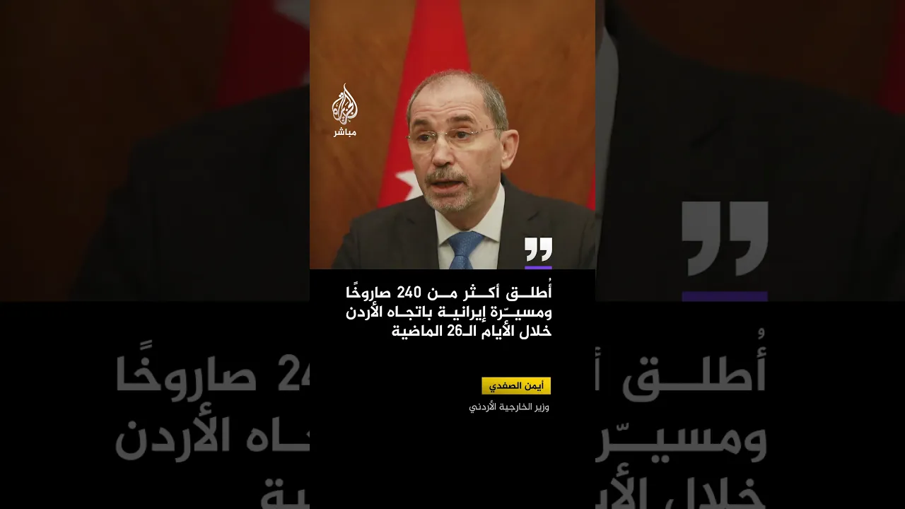 وزير الخارجية الأردني: أُطلق أكثر من 240 صاروخًا ومسيّرة إيرانية باتجاه الأردن خلال الأيام الـ26 الماضية