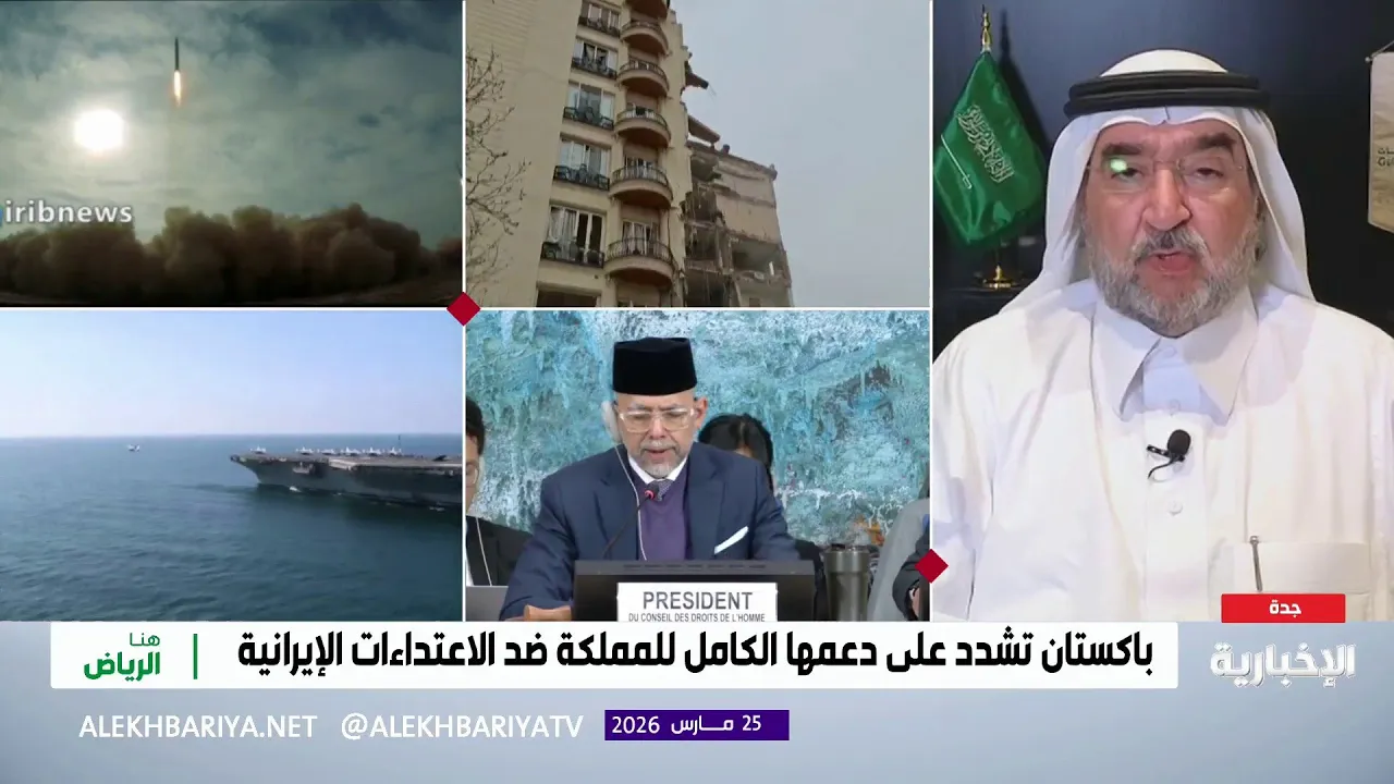 مجلس حقوق الإنسان التابع للأمم المتحدة يدين الهجمات الإيرانية على دول الخليج ويطالب بتعويضها.. المملكة تؤكد أن النهج الإيراني لن يحقق لطهران أي مكاسب بل سيزيد من عزلتها.. وبيان مشترك للمملكة ودول عربية يدين اعتداءات فصائل مسلحة موالية لإيران من العراق على دول في المنطقة ومنشآتها وبنيتها التحتية