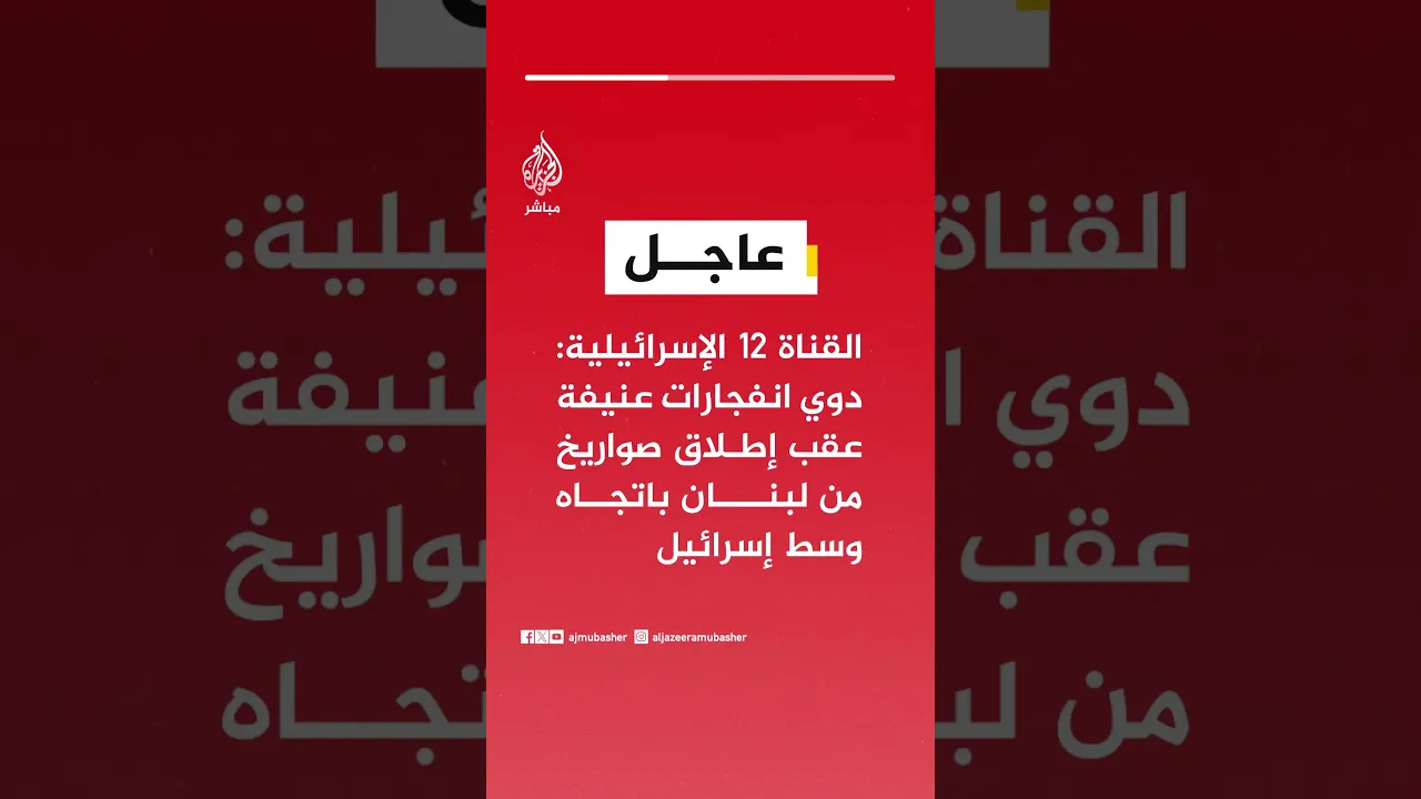 عاجل | القناة 12 الإسرائيلية: دوي انفجارات عنيفة عقب إطلاق صواريخ من #لبنان باتجاه وسط إسرائيل