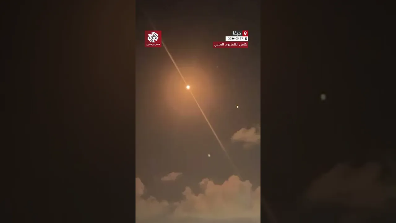 مشاهد خاصة بالتلفزيون العربي تظهر لحظة وصول رشقة صاروخية من لبنان إلى حيفا ومحاولات الدفاعات الجوية الإسرائيلية اعتراضها