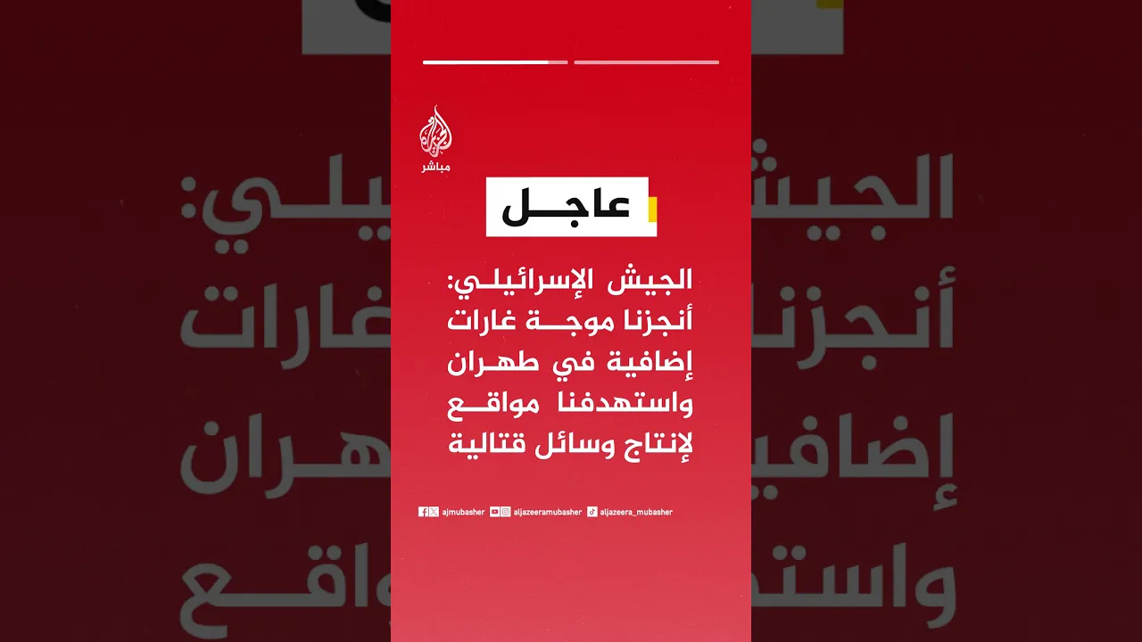 الجيش الإسرائيلي: أنجزنا موجة غارات إضافية في طهران واستهدفنا مواقع لإنتاج وسائل قتالية