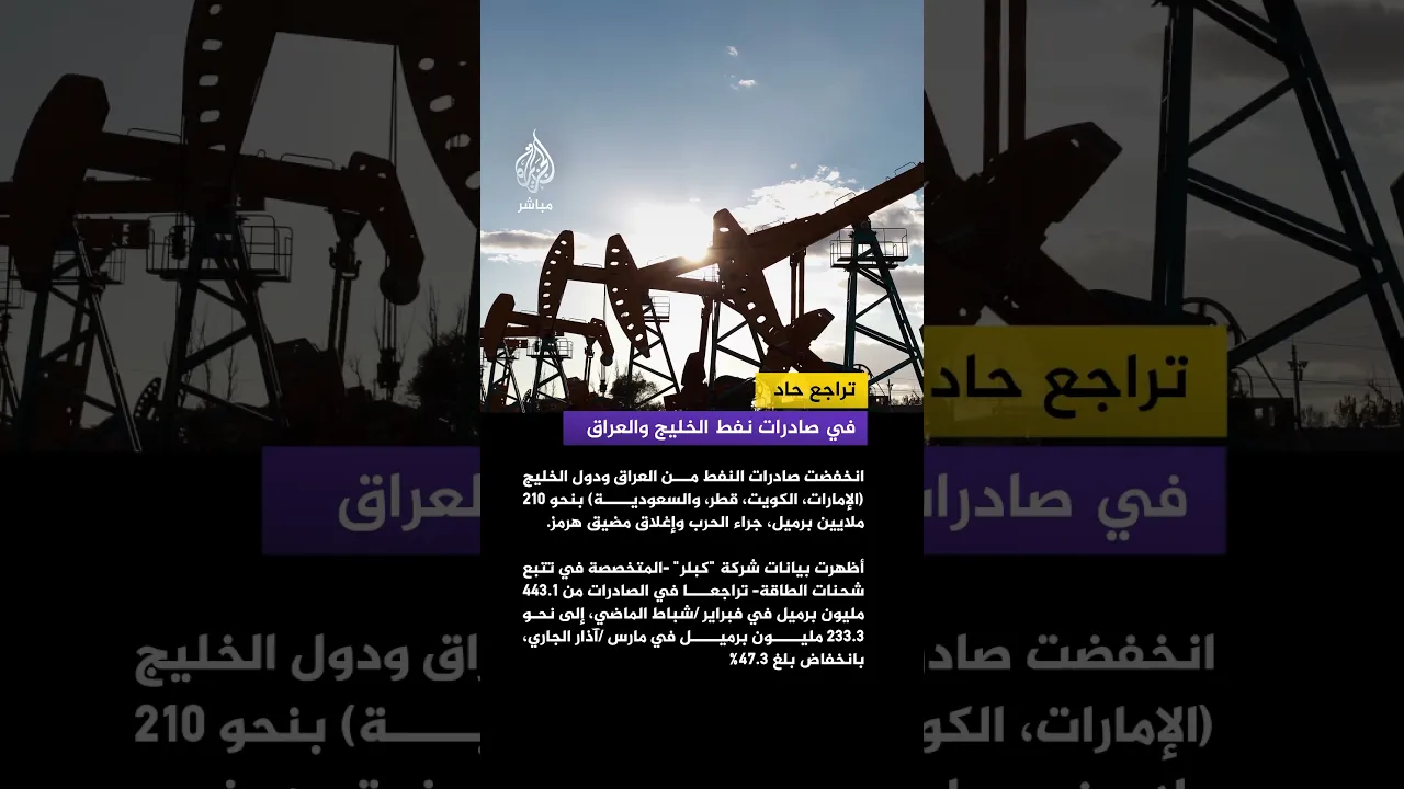 كبلر: تراجع صادرات النفط من العراق ودول الخليج بنحو 210 ملايين برميل خلال الشهر الجاري، جراء الحرب وإغلاق مضيق هرمز