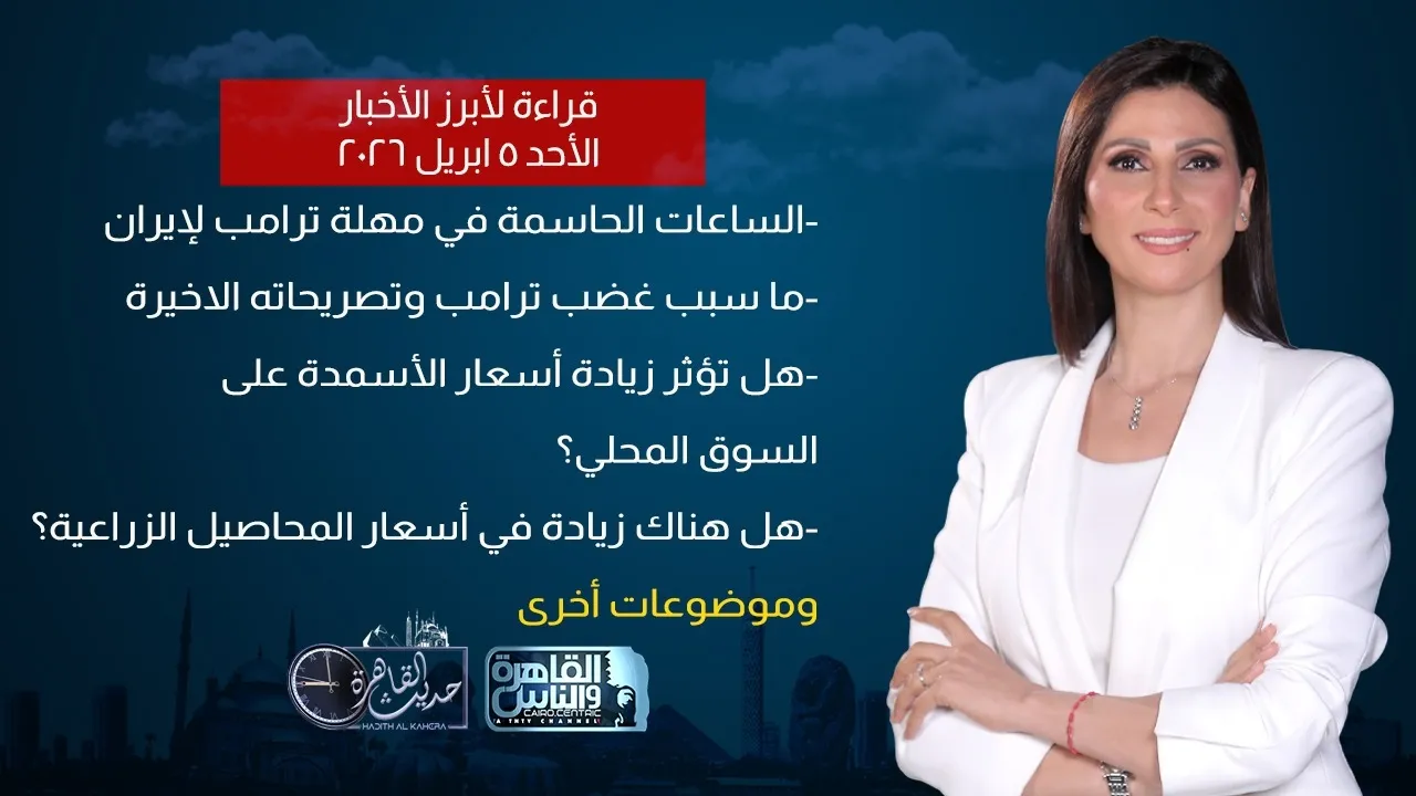 حديث القاهرة مع كريمة عوض| ماذا سيحدث بعد الساعات الأخيرة في مهلة ترامب لإيران؟- حقيقة زيادة أسعار المحاصيل الزراعية- هل تنخفض أسعار الطماطم؟