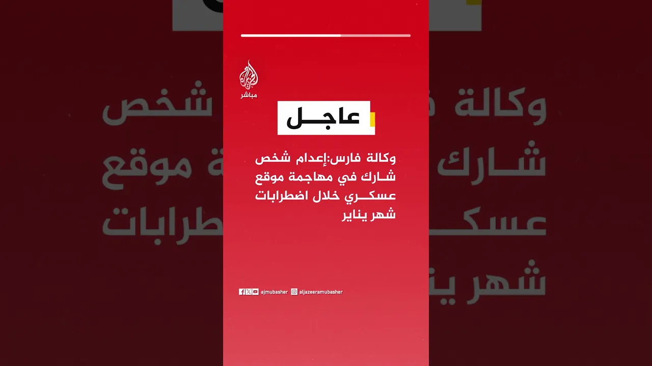 عاجل | وكالة فارس: إعدام شخص شارك في مهاجمة موقع عسكري خلال اضطرابات شهر يناير