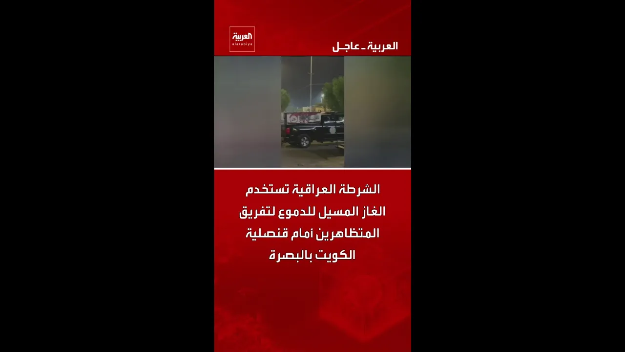 الشرطة العراقية تستخدم الغاز المسيل للدموع لتفريق المتظاهرين أمام قنصلية الكويت بالبصرة