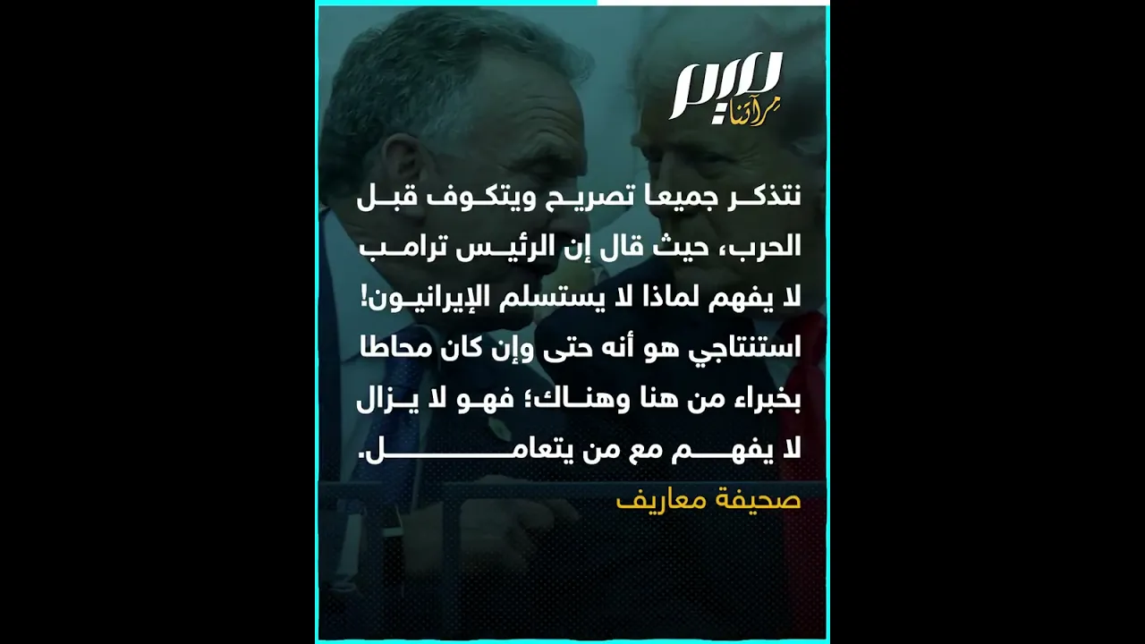 "ترامب يائس ومحبط".. صحيفة "معاريف" العبرية، تقول إن تهديدات ترامب الأخيرة لا تخيف الإيرانيين، الذين يفضلون التمسك بأوراق القوة التي بين أيديهم، وعدم الاستسلام.