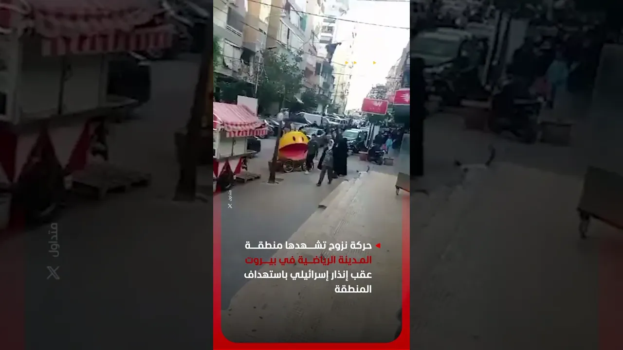 حركة نزوح تشهدها منطقة المدينة الرياضية في بيروت عقب إنذار إسرائيلي باستهداف المنطقة