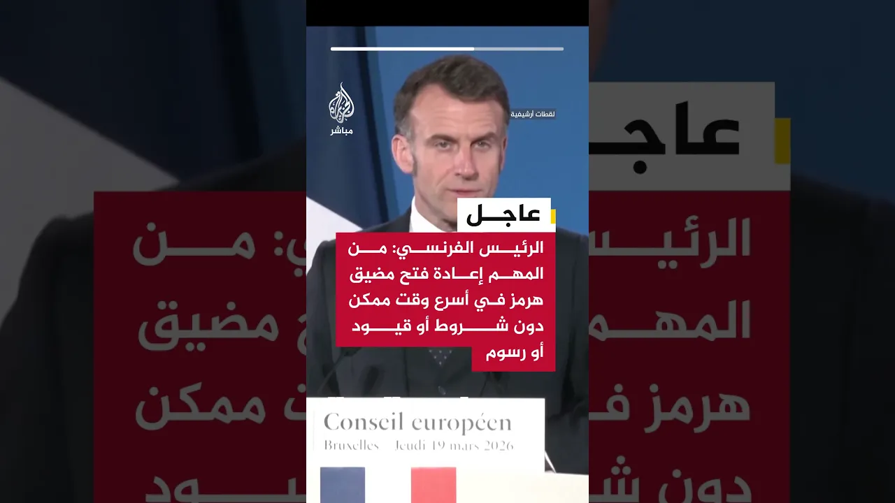 الرئيس الفرنسي: من المهم إعادة فتح مضيق هرمز في أسرع وقت ممكن دون شروط أو قيود أو رسوم