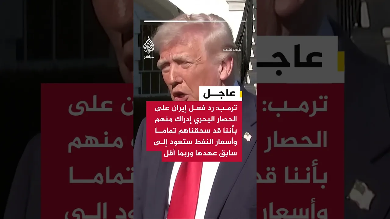 ترمب: رد فعل إيران على الحصار البحري إدراك منهم بأننا قد سحقناهم تماما وأسعار النفط ستعود إلى سابق عهدها وربما أقل