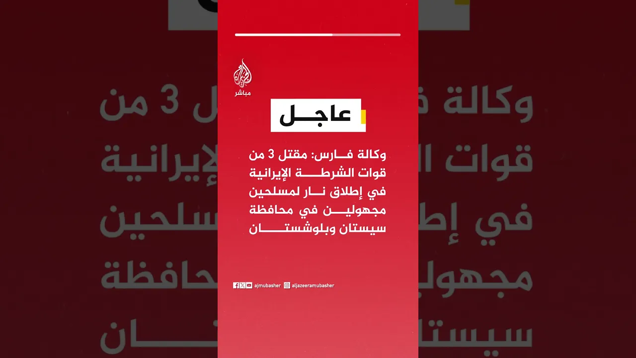 عاجل | وكالة فارس: مقتل 3 من قوات الشرطة الإيرانية في إطلاق نار لمسلحين مجهولين في محافظة سيستان وبلوشستان