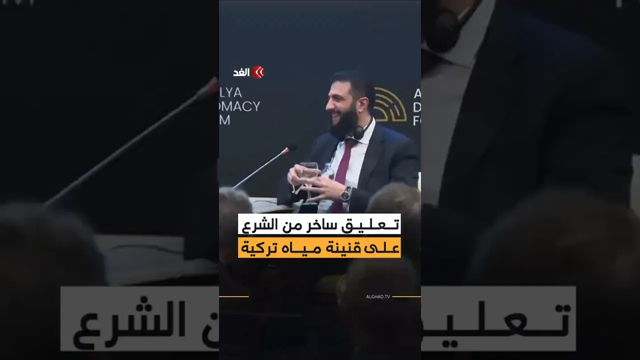 الرئيس السوري أحمد الشرع يمازح حضور فعالية في تركيا بعد نجاحه في فتح زجاجة مياه بسهولة قائلا إن القنينة التركية تبدو أفضل من نظيرتها البريطانية في إشارة إلى موقف سابق واجه فيه صعوبة في فتح زجاجة مياه خلال منتدى بلندن وتدخلت محاورته في الجلسة لمساعدته