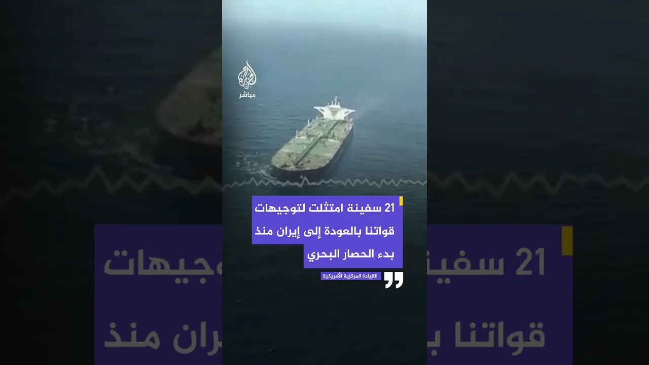 القيادة المركزية الأمريكية: 21 سفينة امتثلت لتوجيهات قواتنا بالعودة إلى #إيران منذ بدء الحصار البحري